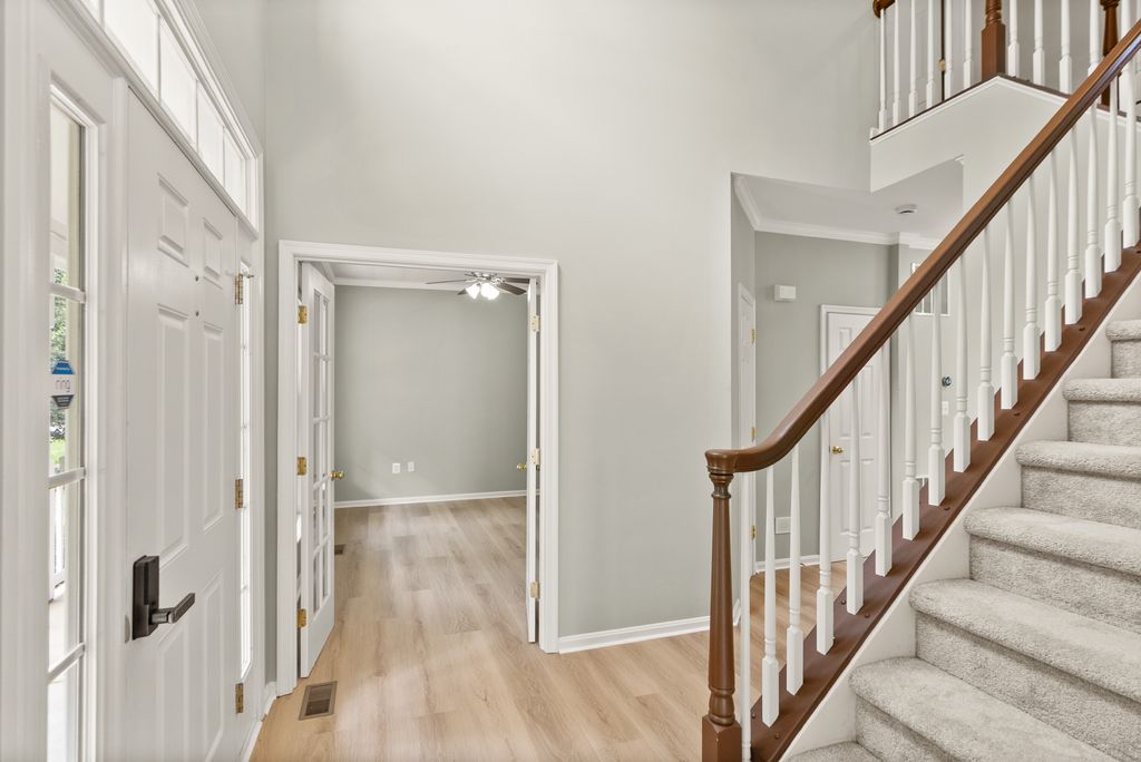 Discover this beautifully renovated 4-bedroom, 3.5-bath gem in Round Hill. Boasting newly installed luxury vinyl plank flooring throughout the main floor, new kitchen appliances, and a refreshed powder room. Main floor features elegant two story foyer, office with elegant french doors, separate living room, spacious dining room with bay window, family room off the kitchen has vaulted ceilings & gas fireplace. The basement offers a movie theater with projector screen, exercise room, and a versatile den which can be used as an optional 5th bedroom with built-ins and closet. Brand new carpet installed on upper level and staircase 2025. New railing installed on basement staircase 2025. Newer hot water heater & one HVAC unit has been replaced 2024. Enjoy the privacy and tranquility of a fully fenced backyard and spacious front porch to enjoy your morning coffee. The home has gas line for grill on rear deck. EV charger installed in garage. Pets on a case by case basis. Pet deposit is for each pet.